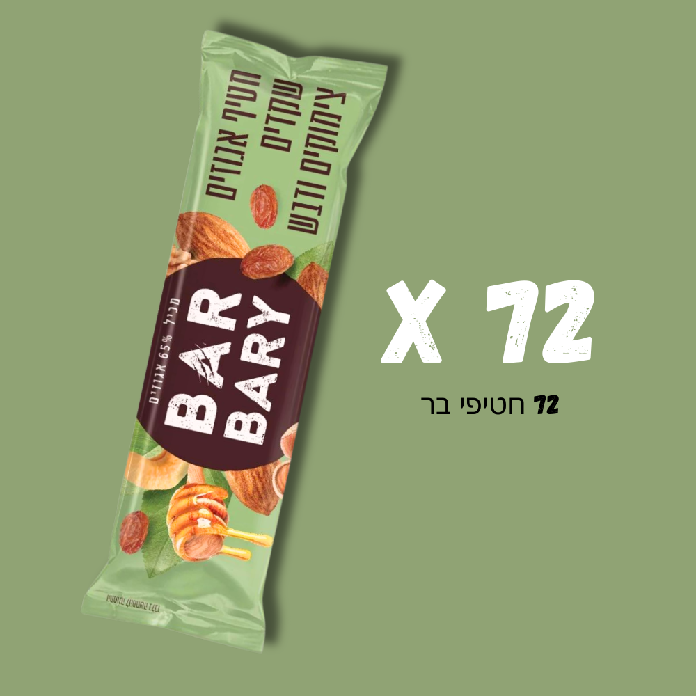 חטיפי Barbary הם פרי פיתוח ייחודי המאפשר לנו לייצר חטיפים העשויים מלא פחות 70% אגוזים ופירות ללא תוספים מלאכותיים!