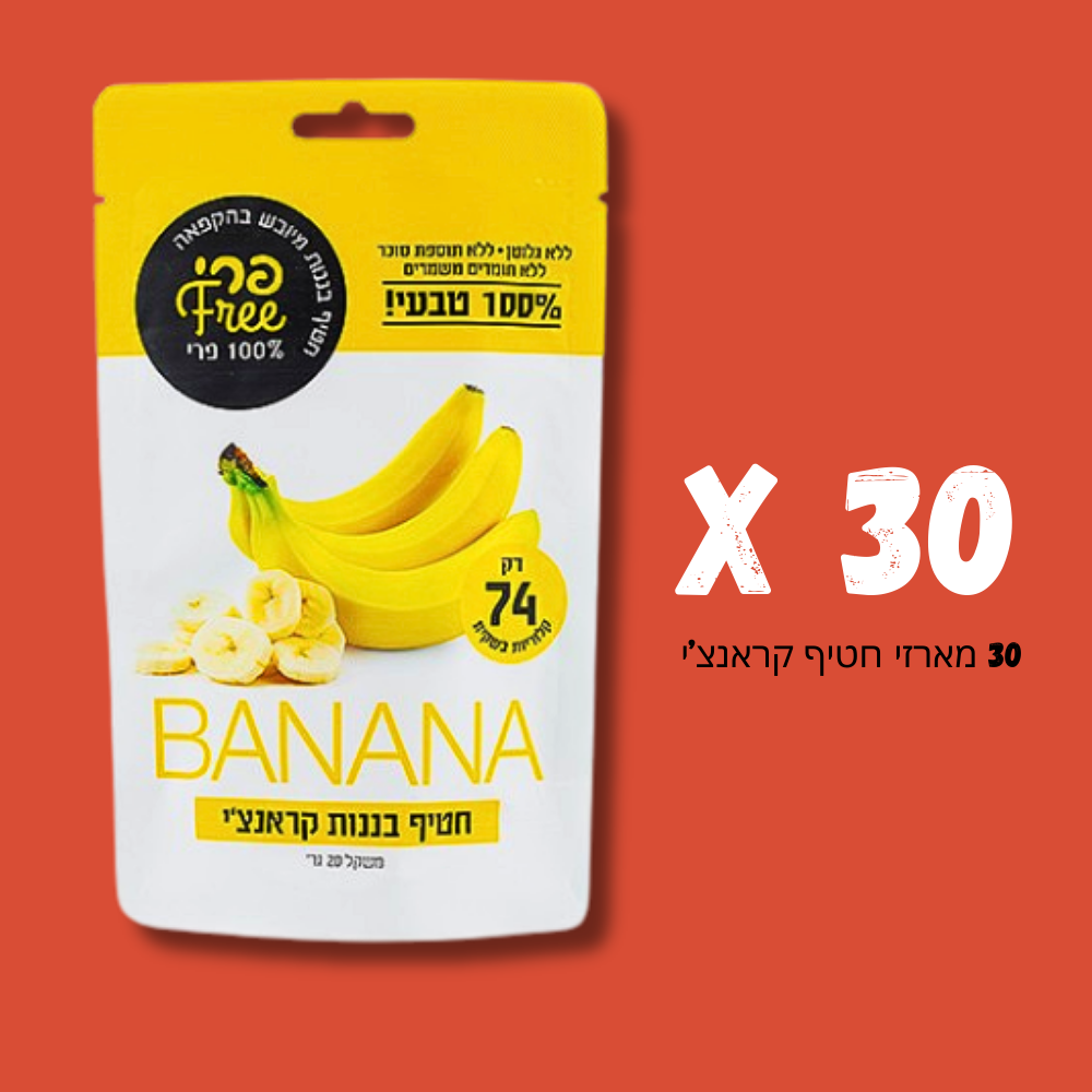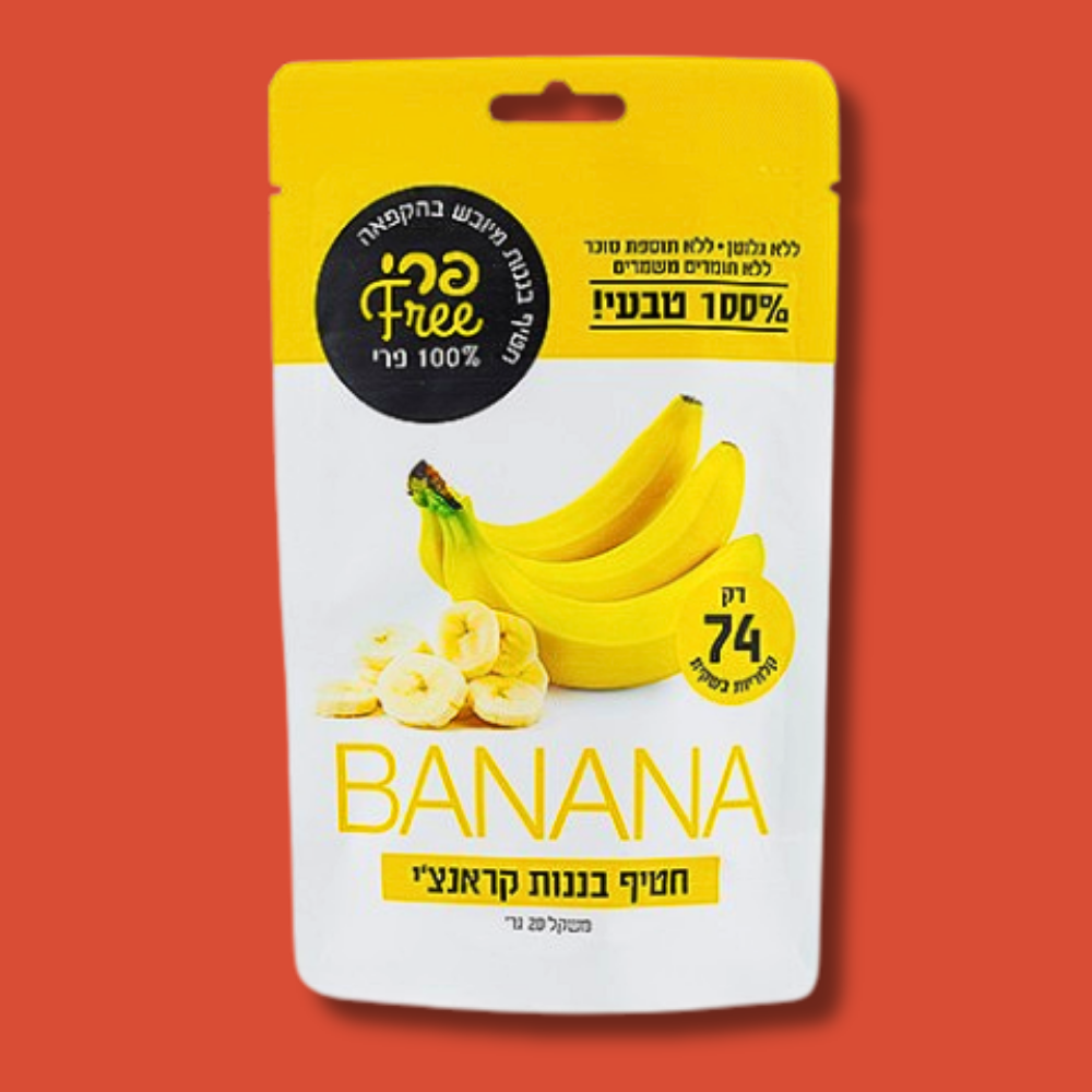 חטיף בננה קראנצ'י מיובש בהקפאה טעים ובריא 100% פרי